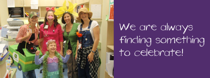 Our office celebrates victories big and small. We love birthday parties, and make sure every child is recognized with a song and a gift on their special day. And we really have a great time at End of Chemo parties! All of our doctors and nurses pick up their pom poms and cheer! We even have a special End of Chemo song we sing. It's something we all look forward to, as do our patients!